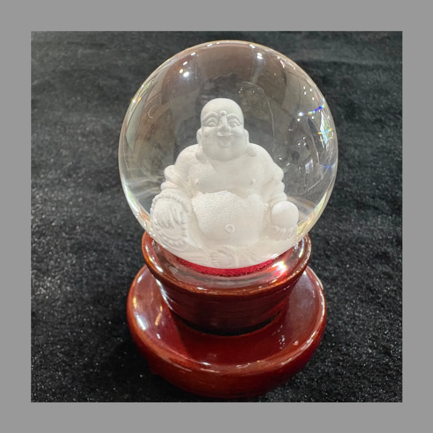 *メルカリ更新しました!水晶丸玉”布袋彫り” 台座付き*